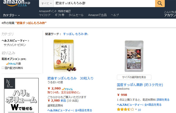 早速肥後すっぽんもろみ酢を探し始めました。ダイエットはある程度の期間が必要なので、やっぱりコストパフォーマンスは大事ですよね。肥後すっぽんもろみ酢を売っているところを探そうと、まずは楽天、アマゾンから検索をかけました。